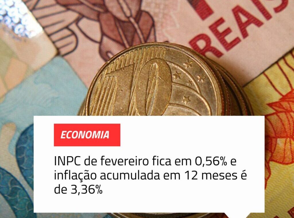 INPC DE FEVEREIRO FICA EM 0,56% E INFLAÇÃO ACUMULADA EM 12 MESES É DE 3,36%